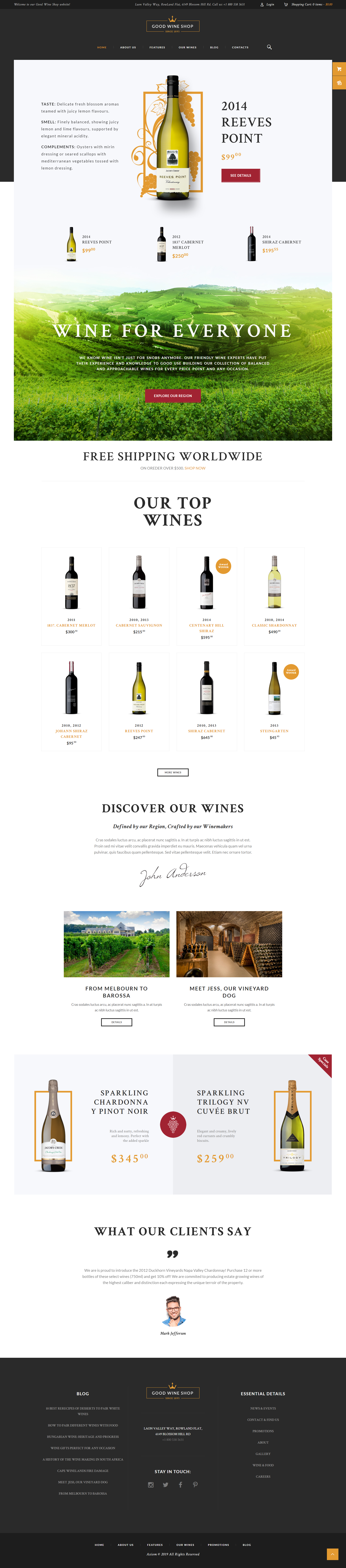 美酒專賣店 Good Wine版型提供各種酒類的商店版型,可以讓相關產業商店快速建立購物車網站 bill2019-11-03T21:08:41+08:00 請選擇要用來分享此作品的社群平台! FacebookTwitterPinterest Related Posts 營建產業形象購物車 營建產業形象購物車 1 12 月, 2019 | 0 Comments 商業形象購物車 商業形象購物車 1 12 月, 2019 | 0 Comments 多功能商業形象版型 多功能商業形象版型 1 12 月, 2019 | 0 Comments Capital版型 Capital版型 1 12 月, 2019 | 0 Comments 商務形象版型3 商務形象版型3 1 12 月, 2019 | 0 Comments 商務形象版型2 商務形象版型2 1 12 月, 2019 | 0 Comments